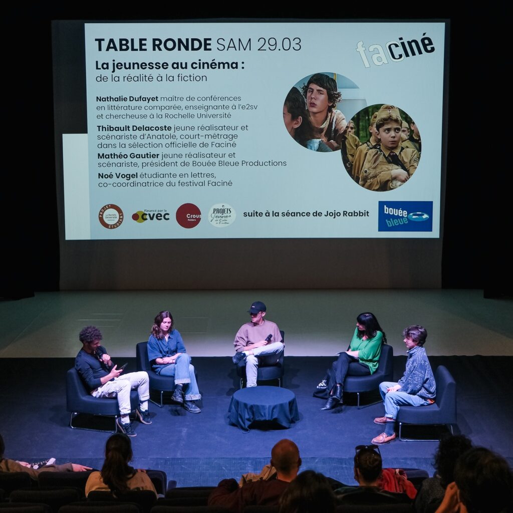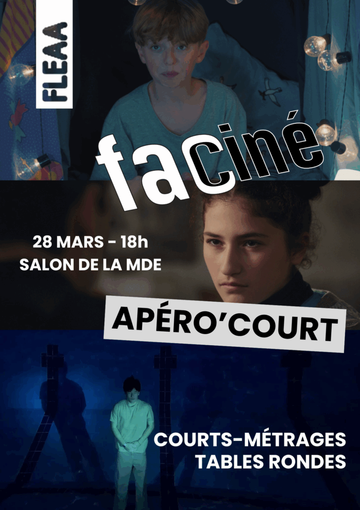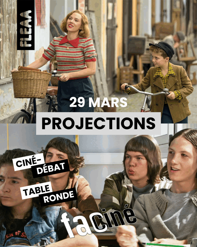 Crédits photo : Lucie GAGNEUX (FLEAA), Lucas DALQUIÉ (Mortagne) – Photogrammes d’affiches : Anatole, de Thibault DELACOSTE – Fortissimo, de Victor CESCA Submersion, de Lucas GRADAIVE – Les Beaux Gosses de Riad SATTOUF – Jojo Rabbit de Taika WAITITI
